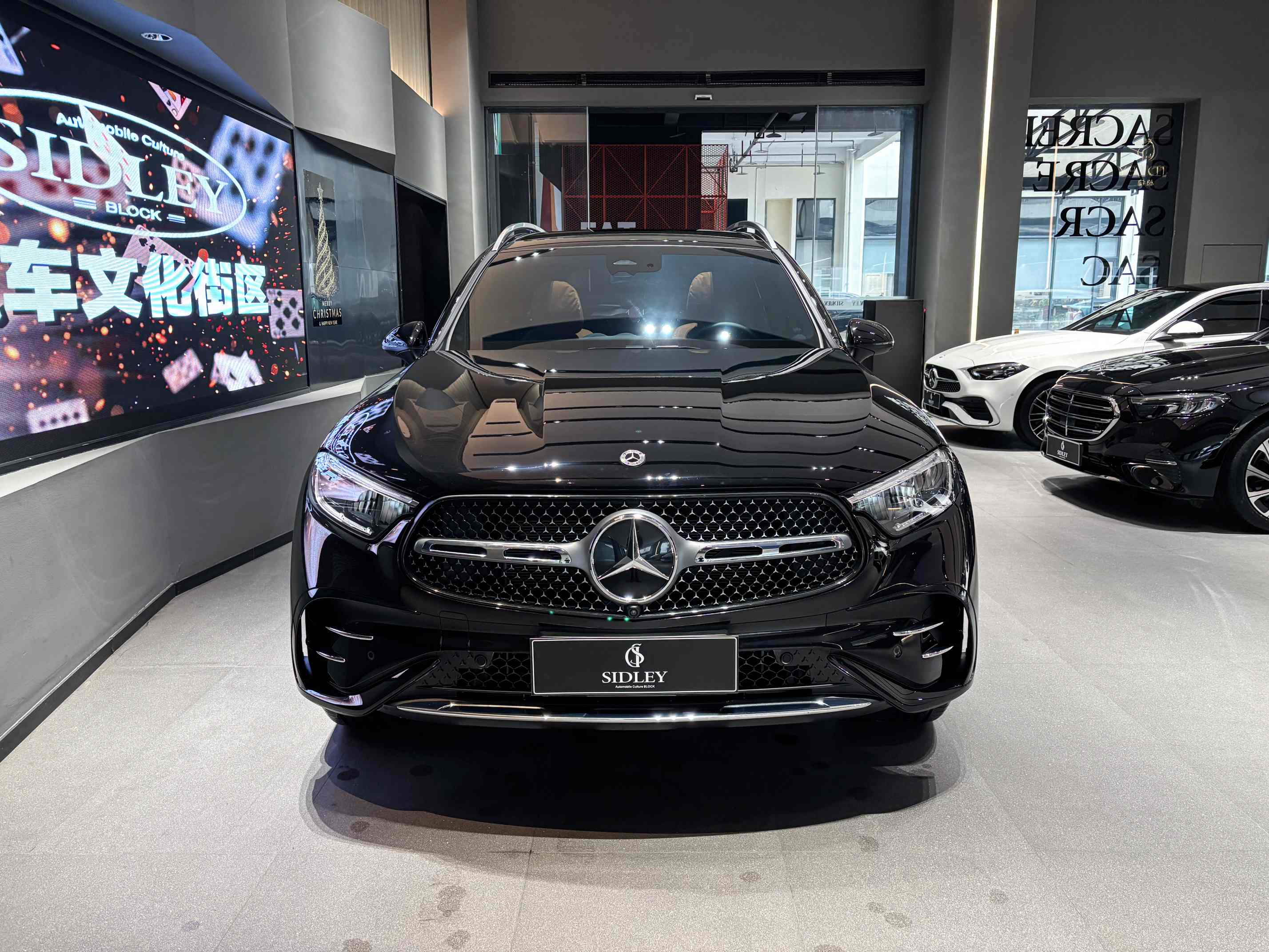夜幕星河格栅 + 三叉星徽 + 几何多光束 LED 大灯,搭配 AMG 运动包围,气场强、辨识度高。