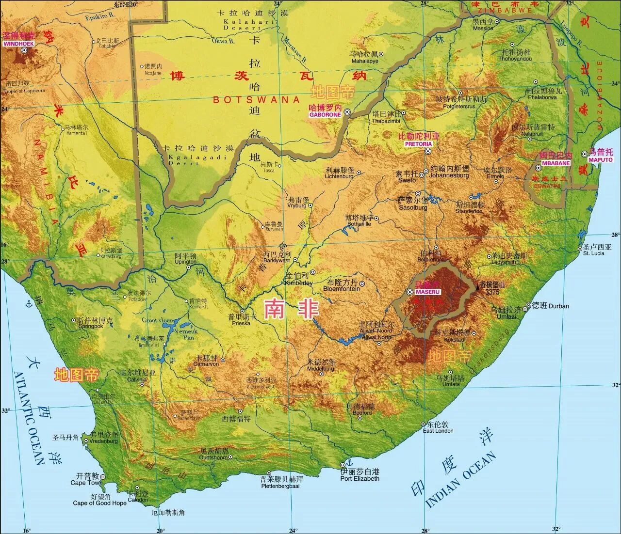 南非位于非洲大陆最南端,东濒印度洋,西临大西洋,扼两大洋交通要冲,海岸线长达3000多公里。国土总面积121.9万平方公里,有6个陆地邻国。